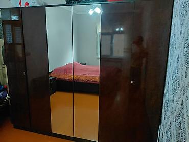 - Geniş paltar şkafı – 4 qapılı, ortada tam ölçülü güzgü panelləri