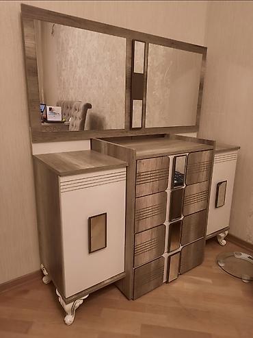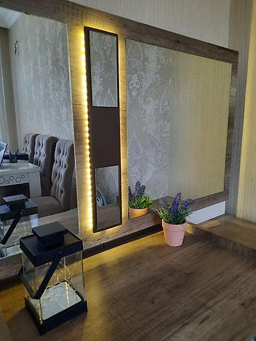 - Komod və güzgü: geniş üst səth, çoxsaylı çekmecələr, dekorativ güzgü və LED işıqlandırmalı panel