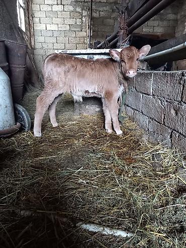 Simental tipli inəklər və buzağı - salam aleykum qirmizi inek 20 gundu 4 cu balasin dogub bala qara alalardan nonme dishi baladi 3 doshunden otla 8 9 ltr sud verir saglam ve hundur maldi ..ag ine...