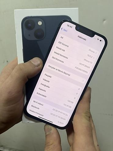 - “Haqqında” bölməsində “Model Adı: iPhone 13”, “Kapasite: 128 GB” görünür.