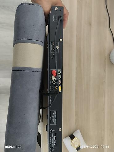 - Arxa panel çıxışları: Kompozit video (Video Out, sarı), komponent video (Y/Pb/Pr), stereo audio (L/R), koaksial rəqəmsal audio (Coaxial), əlavə AUX IN/OUT portları