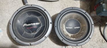Komplektdə şəkillərdə olan 3 ədəd 12" subwoofer var: JVC CD-3000, Pioneer Champion Series, Harman/Kardon. Quraşdırma deşikləri, terminallar və etikətlər fotolarda aydın göstərilib.