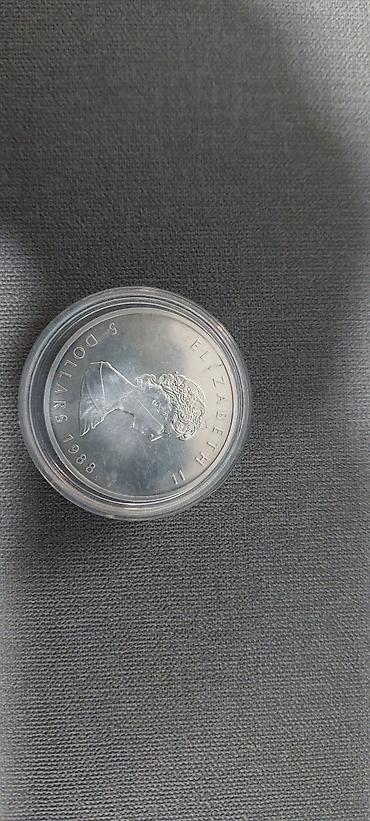 - Ön üz: II Elizabeth portreti və “ELIZABETH II • 5 DOLLARS • 1988” yazıları