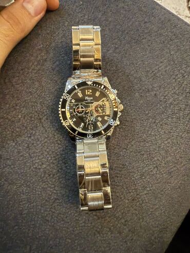 - Kişi qol saatı: NIKUN brendi, paslanmayan polad rəngli metal qayış, qara siferblat. Döner bezel, böyük 12/3/6/9 indeksləri, çoxfunksiyalı üslubda sub-siferblatlar, tarix pəncərəsi, yanal tac və iki düymə. Mineral tipli şüşə görünüşlü, klassik metal halqalı qapanma.