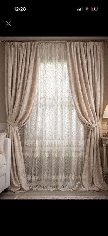 - Komplekt: qalın dekorativ pərdə + tül