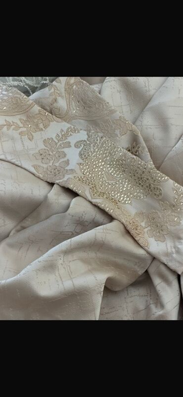 - Qalın pərdə: sıx fakturalı parça, zərif rellef naxışlar və yüngül parıltılı detallar; eyni parçadan bağlayıcı kəmərlər