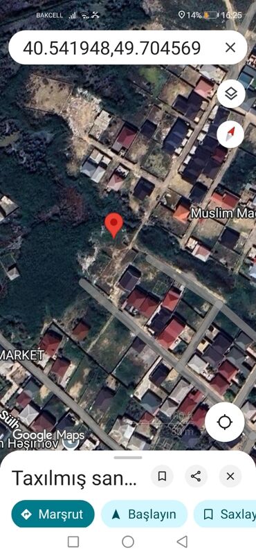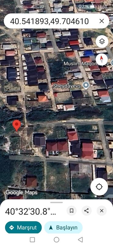 - Yer: Xəritədə göstərilən koordinatlar – 40.541948, 49.704569 (ətrafda “Muslim Maqomayev” və “Sheydayevs” nişanları görünür)