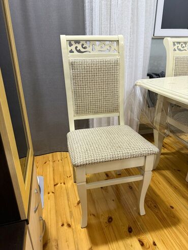 - Üslub: klassik, oyma dekorlu arxa hissə və yüngül əyrili ayaqlar