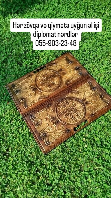 Şəkildə göstərilən məlumat: “Hər zövqə və qiymətə uyğun əl işi diplomat nərdlər 055-903-23-48”. (Qeyd: nömrə şəkildən sitat kimi verilib.)