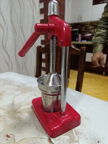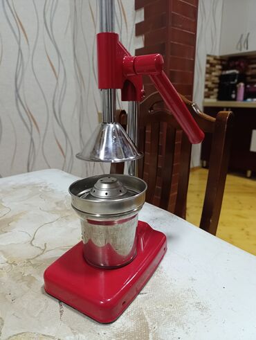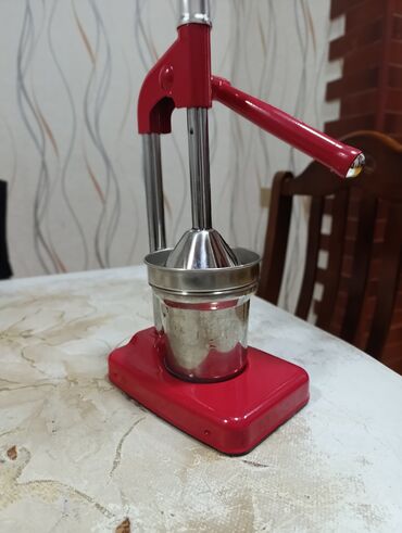 Evdə təzə sitrus şirəsi hazırlamaq üçün praktik və istifadəsi rahat pres tipli qurğu. Qolu aşağı salmaqla meyvəni maksimum dərəcədə sıxır, qabında toplama imkanı verir.