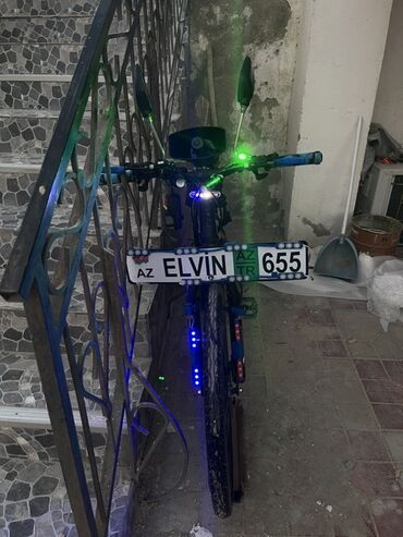Şəhər və gündəlik istifadə üçün modifikasiya olunmuş velosiped - Qara rəngli, düz sükanlı velosiped, ön və arxa V-brake əyləclər - Arxa hissədə inteqrə edilmiş LED işıq sistemi: qırmızı və mavi si...