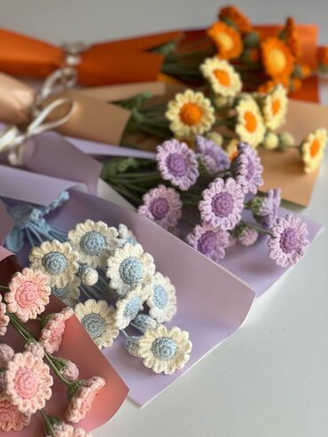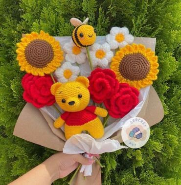 - Xüsusi dizayn toxunma güllər: müxtəlif rəng və formalarda papatya, qızılgül, günəbaxan və s. Kompozisiya kimi buket şəklində hazırlanır, sarmalı kağız və lentlə bəzədilir. Uşaq motivli yumşaq toxunma fiqurlar (məsələn, ayıcık, arı və s.) ilə kombinə edilə bilən variantlar mövcuddur.