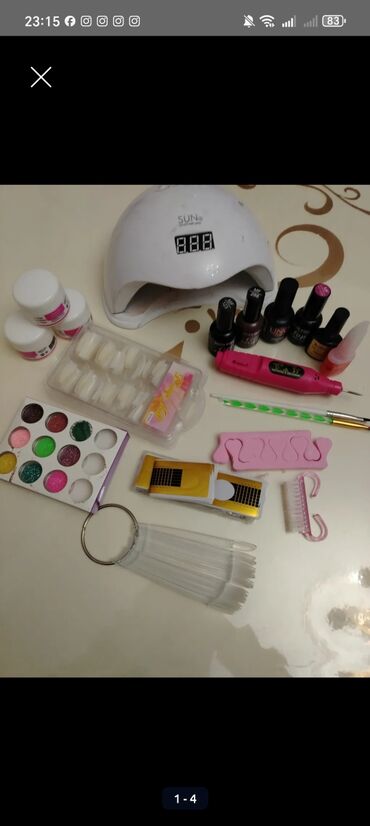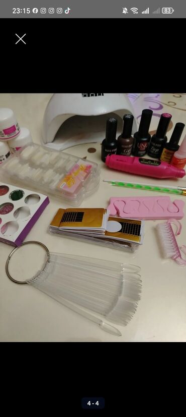 Evdə və ya salon şəraitində gel lak, uzatma və dizayn işləri üçün lazım olan əsas alət və materiallar bir yerdə. Rəng və brendlər şəkillərdə görsənir.