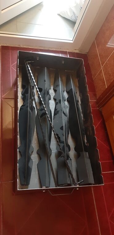 Kabab manqalı, hündürlüyü 80 sm, uzunlugu 80 sm, eni 42 sm, qalın 8 lik vaqon dəmiri ilə hazirlanib