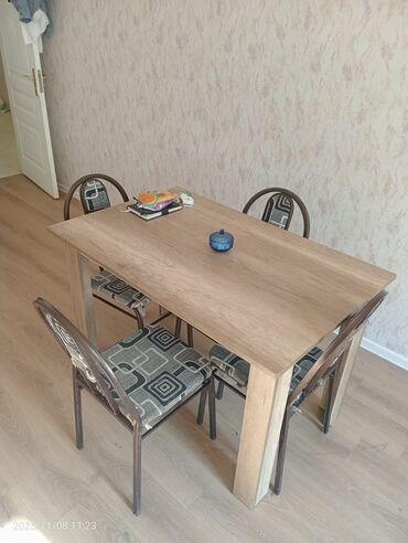 Metall karkaslı masa və divan dəsti - Tərkib: 1 ədəd masa, 2 ədəd ikiyerli divan (bəzi şəkillərdə 2 stul variantı da var). - Karkas: Qara rəngli, gücləndirilmiş metal konstruksiya, “X” formalı day...