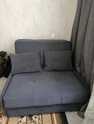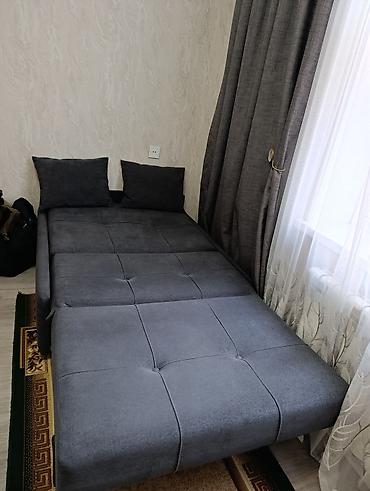 İki nəfərlik açılıb-bağlanan divan - Klassik üslubda, bəzəkli taxta süzgəclərlə işlənmiş qol və alt hissə - Bej rəngli, naxışlı parça üzlük (ornamentli) - Mexanizm: qatlanan çarpayı sistemi – otur...