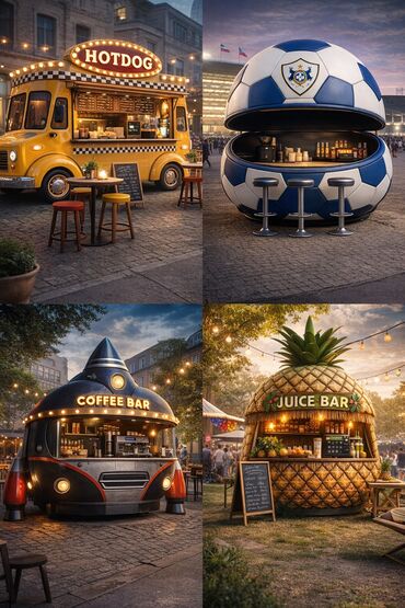 Tematik kiosk/kafe kapsulları – fərdi dizayn və istehsal Məhsul təsviri: - Yüksək cəlbedici forma: futbol topu, moto dəbilqəsi və digər konseptlərdə heykəlsi kiosk/kafe moduluları. - Matrial: möhk...