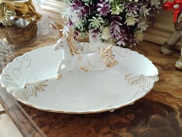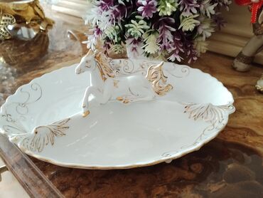 Karusel dizaynlı dekorativ qab - Material: mat ağ keramika/porşelen