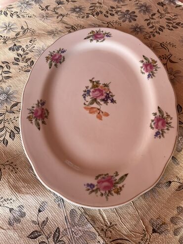 - Klassik dizaynlı, açıq çəhrayı/çəhrayı tonlarda oval boşqablar