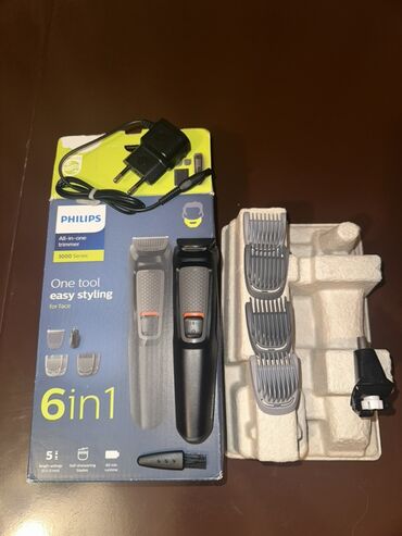 - 6‑da‑1 komplekt: əsas trimmer başlığı, dəqiq kənarlandırma üçün əlavə başlıq, burun‑qulaq trimmer başlığı