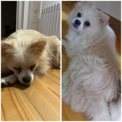 Cins: Pomeranian (Spitz) Rəng: Qar ağ Tüp/tük: Çox yumuşaq, sıx və bol, “fluffy” görünüşlü Ölçü: Mini/kompakt bədən quruluşu, kiçik burun və yumru baş forması Gözlər: Qara, iri və parlaq Xarakter: ...