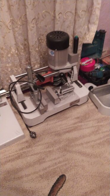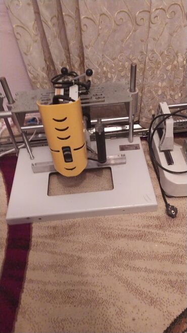 Komplekt şəkildə verilir: əsas pres dəzgahı, kəsim mişarı, iki frez/oyma stansiyası və bələdçi-sıxac aksesuarları.