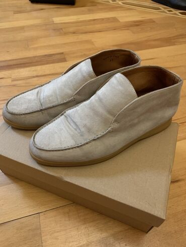 - Material: açıq bej rəngli süet üst, daxili dəri astar