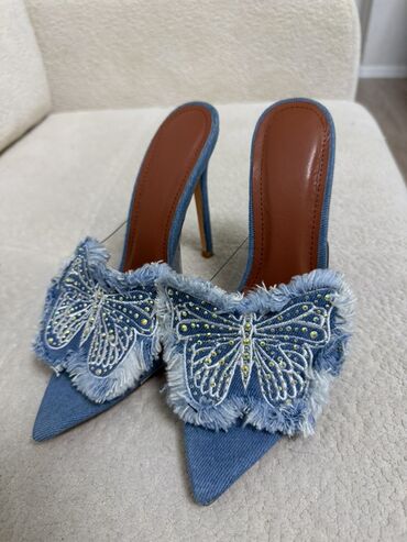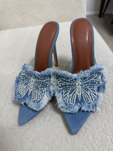 Məhsul: Qadın açıq burnu olan mavi topuqlu terlik-sandal - Brend