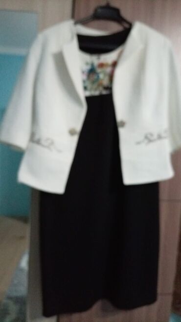 Qadın geyimləri dəsti 1) Qara bleizer - Marka: Koton - Yaxası: klassik V-yaxa, tək düyməli - Astar: ağ rəng, xırda qara nöqtəli; qol ucları astarla bükməli dizayn - Ciblər: iki ədəd dekorativ cibi...