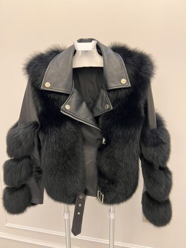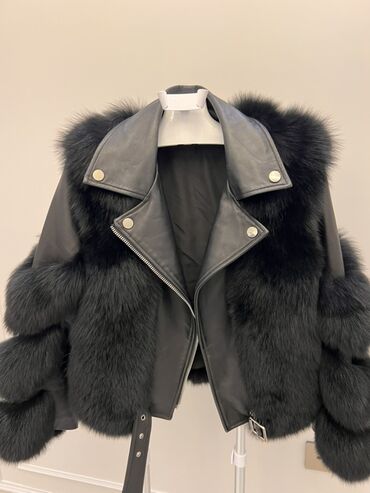 Qadın dəridən üst geyimi – təbii kürklə XS S,M. - Material: qara rəngli yumşaq dəri - Üst hissə: çıxarıla bilən/forma verən geniş kürk applikasiyası (çiyin və sinə hissəsində, arxada yaxaya doğru ...