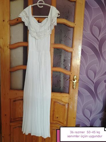 Qadın geyim dəsti – 36 razmer - Ağ uzun paltar: yüngül, axıcı parça;
