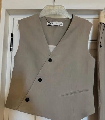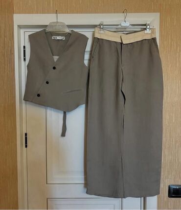 Qadın geyim dəsti – 4 parçadan ibarət 1) ZARA – klassik qadın blezeri - Rəng: tünd bej/khaki - Model: düz kəsim, iki cərgə düyməli görünüş (2 düymə), iti yaxalı - Ön hissədə iki klapanlı cib - İçl...