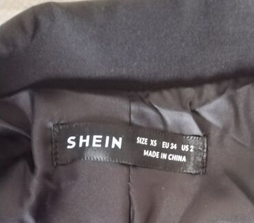Ofis, görüş və rəsmi kombinlər üçün uyğun, qısa bleizer forması ilə şalvar və ətəklərlə asanlıqla uyğunlaşır. Etiketdə “SHEIN – Size XS, EU 34, US 2, Made in China” qeyd olunub.