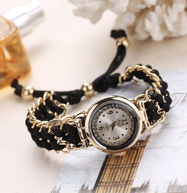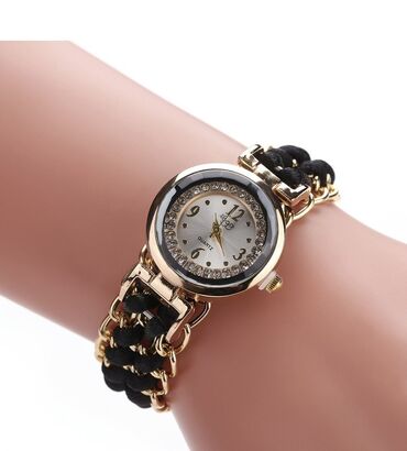 Zərif dizayn, parlaq daşlı çərçivə və toxuma-zəncir kəmər sayəsində həm saat, həm də biləklik kimi istifadə oluna bilən şıq model.