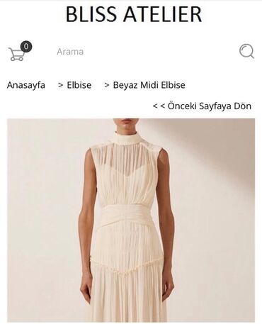 Şəkillərdə göstərilən məhsul Bliss Atelier səhifəsində “Beyaz Midi Elbise” olaraq keçir.