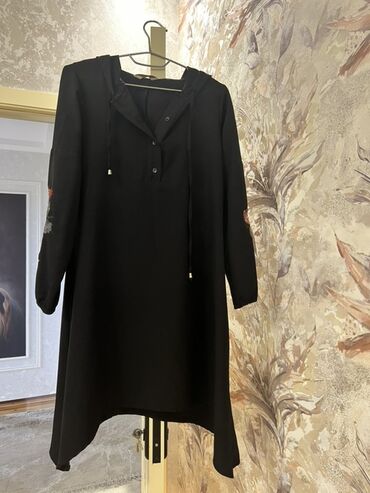 Qara rəngli, uzunqol qadın donu gündəlik istifadə üçün uyğundur. Yan tərəfində fermuar detallı, ön hissəsində iki ədəd cib var. Dizdən aşağı uzunluqda olan bu don rahatlığı və şık görünüşü birləşdirir.