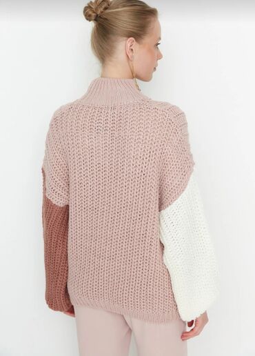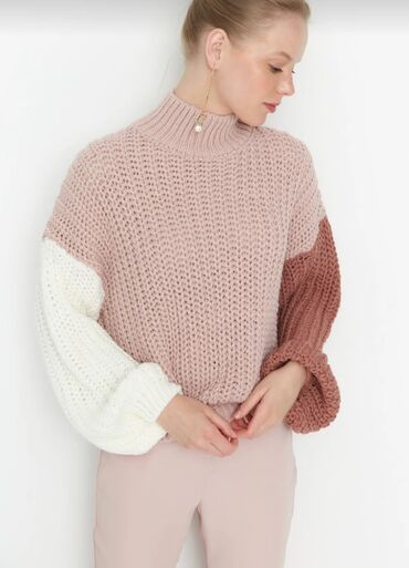 Qadın sviteri – rəng bloklu, qalın toxunuşlu