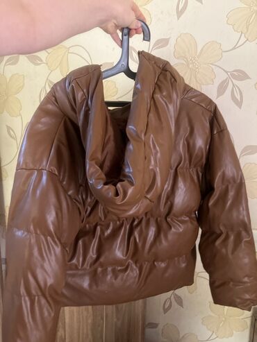 Qadınlar üçün qısa puffer gödəkçə - Rəng: Karamel/qəhvəyi - Material: Parlaq effektli eko‑dəri üst qat, içi qara astarlı - İstilik: Yüngül şişmə dolğu, soyuğa qarşı yaxşı izolyasiya - Yaxa: Yüksək...