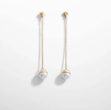 QadınMango Zərif sallantılı sırğalar – qızılı rəngli zəncir və sferik ağ mirvari effektli bəzək