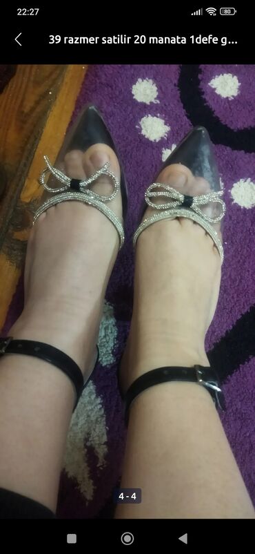 Qadın ayakkabısı – açıq burunlu, arxa hissəsi açıq, qayışlı model. -