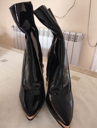 Qadın laklı bot – stiletto daban - Rəng: qara, yüksək parlaq lak