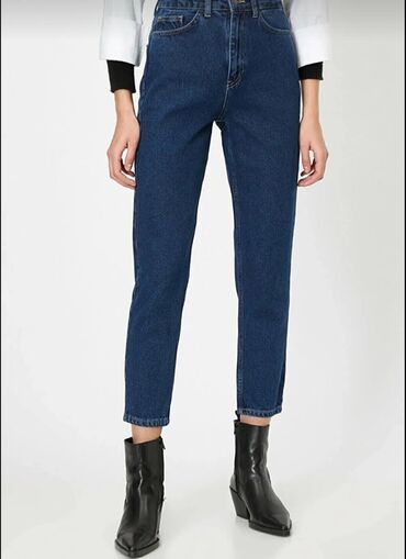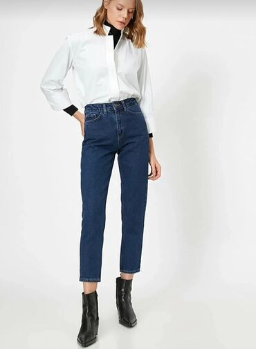 Qadın üçün klassik mavi cins şalvar - Rəng: tünd mavi (yüngül yuma effekti ilə) - Kəsim: düz/relaks siluet, bir az geniş balaq - Bel: yüksək bel - Bağlanma: metal düymə və fermuar - Ciblər: 5 cibl...