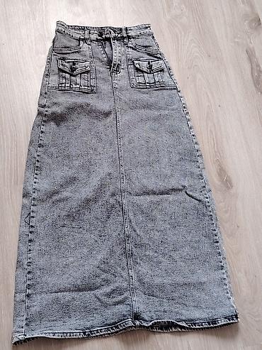 Uzun denim ətək - Rəng: boz “stonewashed” effekti - Model: yüksək