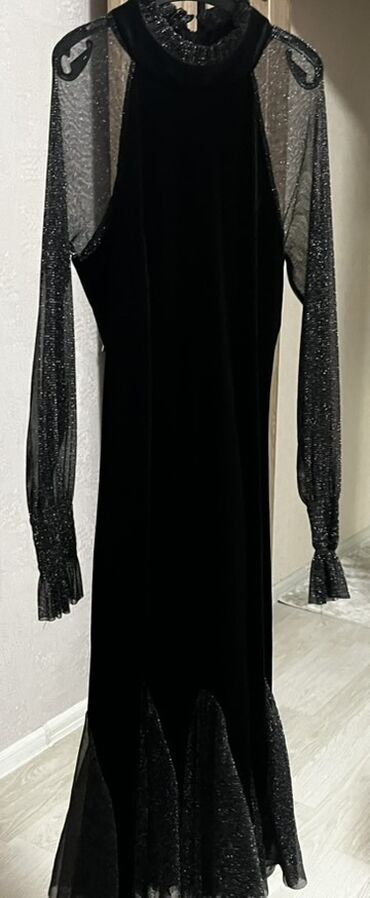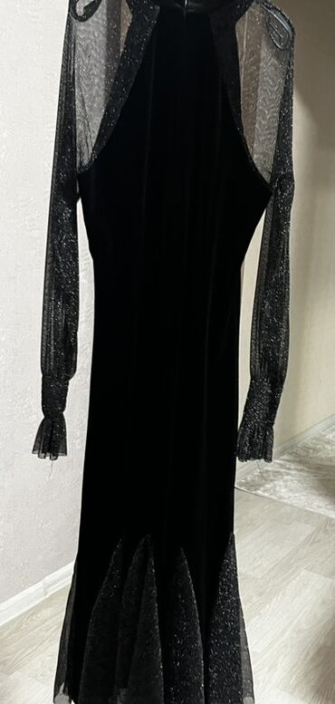 - Material: əsas hissə yüksək keyfiyyətli məxmər; qollar və alt ətək hissəsi parıltılı tül/şifon.