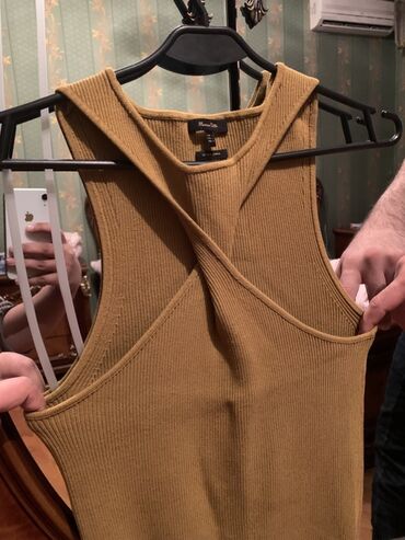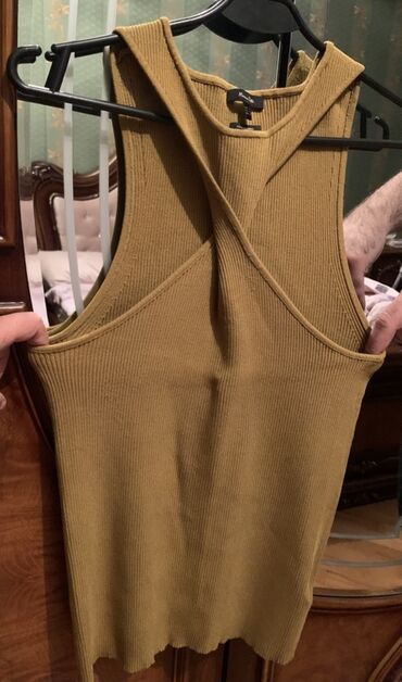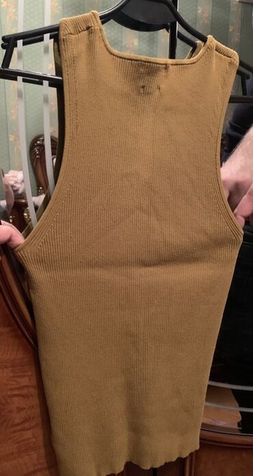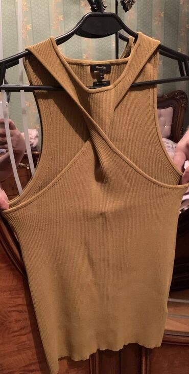 Qadınlar üçün sleeveless top - Rəng: tünd qəhvəyi/terrakota - Model: qolsuz, bədənə oturan kəsim - Yaxa: balıqçı tipli, dalğalı kənarlarla - Dekor: ön hissədə yüngül naxış/ajur şaquli detalları - ...