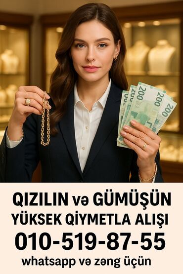 Xidmət: Qızılın yüksək qiymətə alışı Təsvir: - Qızıl məmulatlarının və külçələrin alınması - Müraciət edə bilərsiniz – operativ cavab - WhatsApp və zəng üçün 24 saat aktiv Qeyd: Elanda göstərilən...
