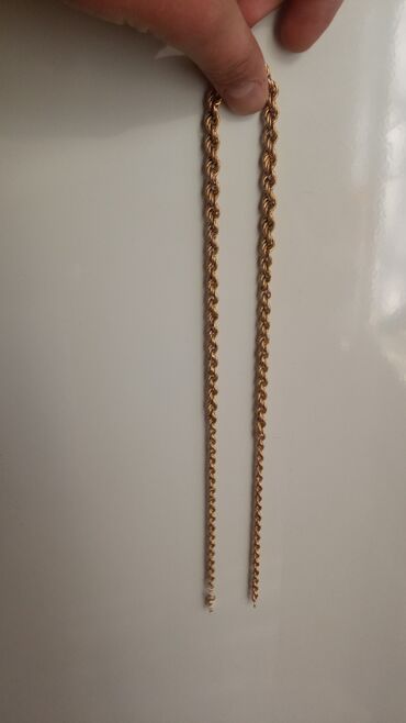 Yeni model qızıl boyunbağı möhkəm modeldi 585əyyar fabriçni sadə qaş Türkiyə istehsalı çəki 1.93qram. Uzunluğ 46sm. Gözəl görnüşlü qızıl boyunbağıdı. Ünvan mağaza Vasmoy 8-ci km mağaza Neftçiler me...
