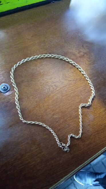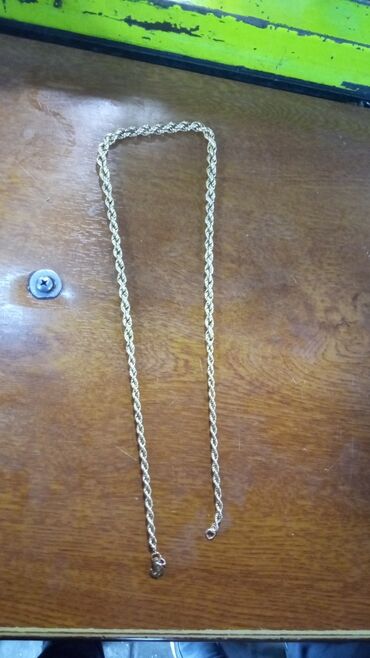 Qızılı rəngdə zəncir – “kordon/rope” fasonu - Material: metal qızılı tonlarda (vizual olaraq klassik rope/kordon hörgü) - Zəncir növü: bükülü hörgü, sıx və parlaq faktura - Qulp: karabin tipli bağ...Giriş•Qeydiyyat