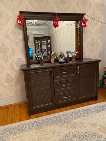 - Komod üzərində geniş ölçülü güzgü, saxlama üçün çoxlu bölmələr