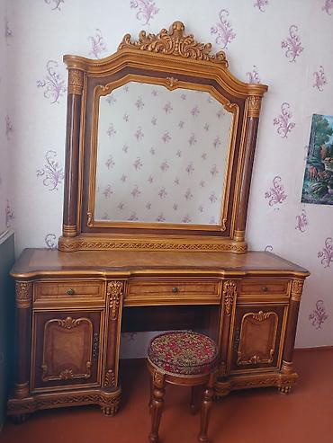 Klassik üslublu güzgülü makiyaj/tuvalet masası və taburet dəsti.